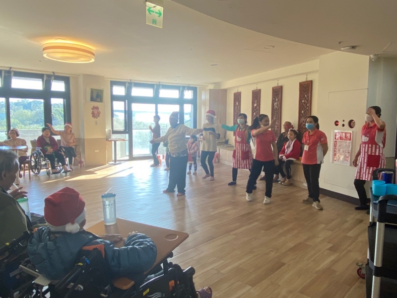 院內小志工與工作人員跳歡樂的聖誕舞步