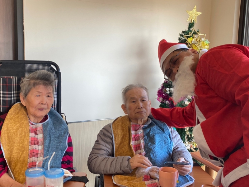 歡慶聖誕節 發布日期:2022.12.25 每到了歲末之際,街道上、商場上 總是可以看到各種迎接聖誕節的布置 節慶氣氛相當濃厚 為要讓一年四季皆在院內生活的長輩有節慶的參與感 院內小志工與工作人員跳歡樂的聖誕舞步 院內副院長扮演聖誕老公公發放糖果餅乾給予住民