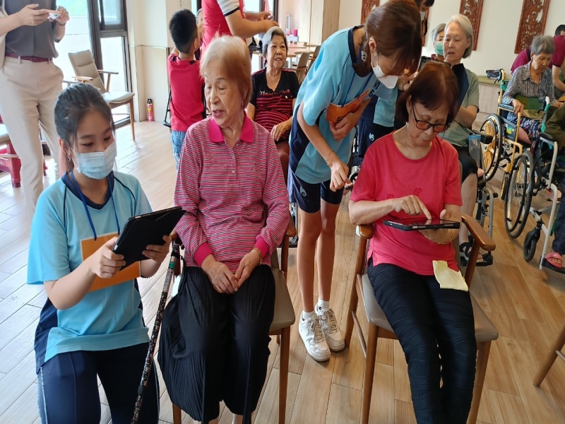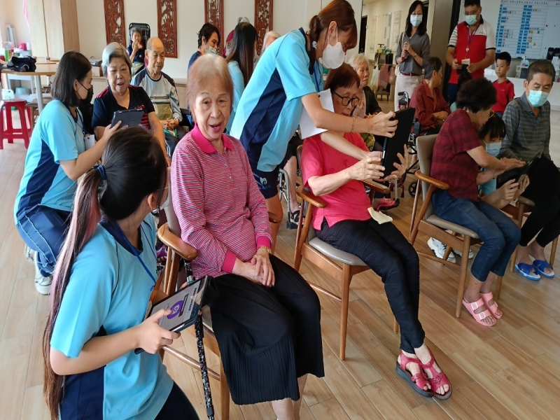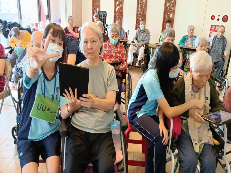 同學用心規畫適合機構長輩的活動方案,並利用時下最盛行的任天堂switch主機,搭配人手一機的平板,進行一對一的互動教學遊戲,長輩在孩子的陪伴下共同完成遊戲任務,溫馨滿足之情,溢於言表,長輩歡心,是我們前行的力量~