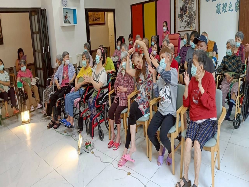 志工老師透過表演引導與住民互動,增加熱鬧氣氛
