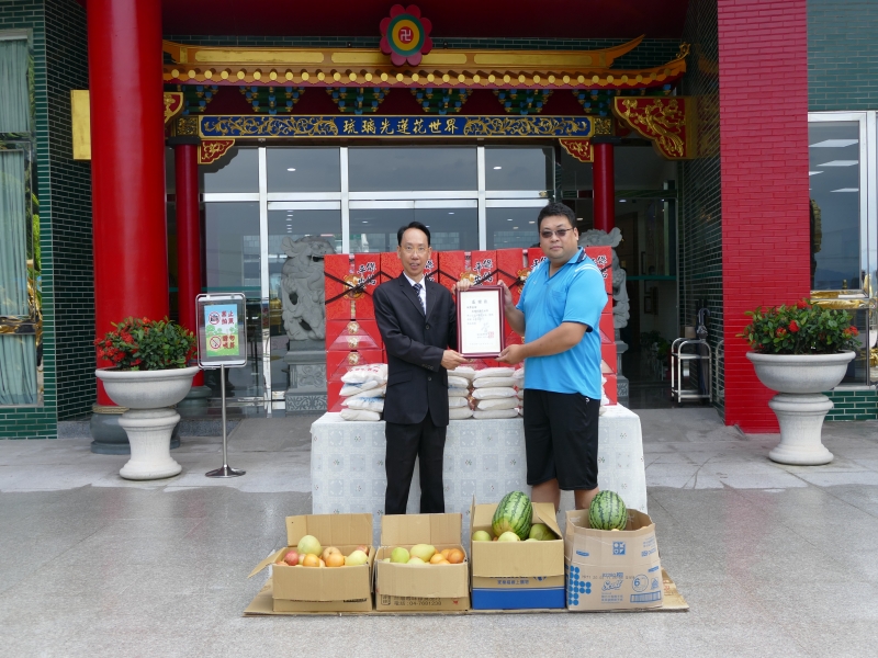 2020.09.01感謝 關西 琉璃光蓮花世界 贈本中心 水果一批 物資一批