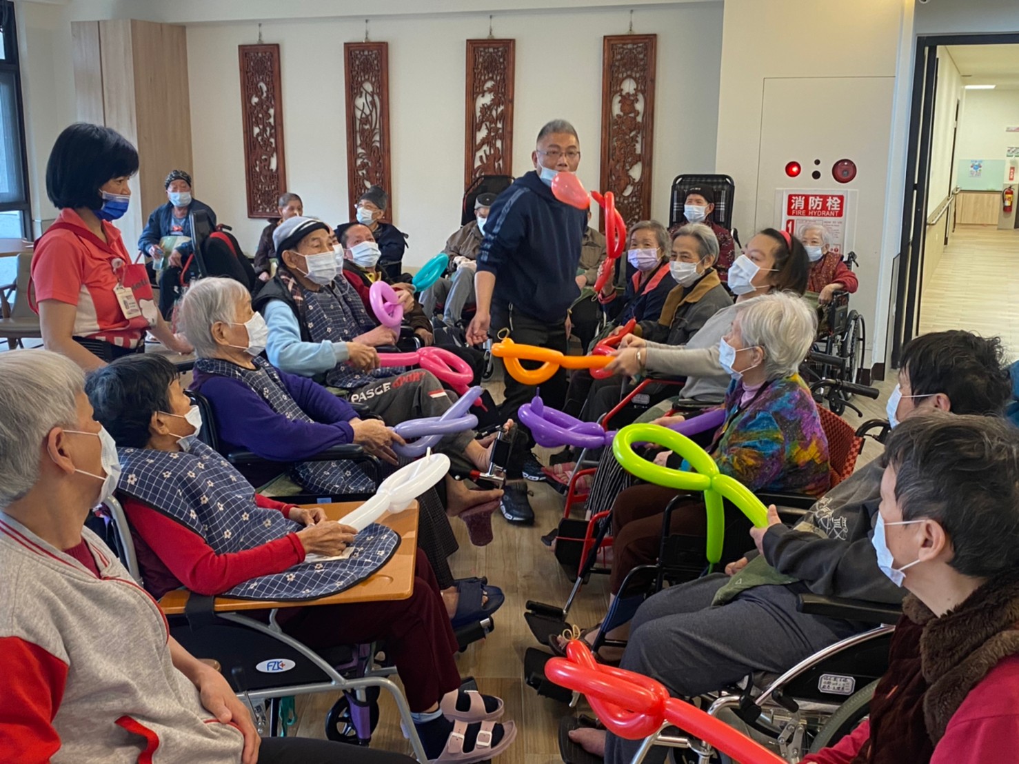 今天由社工及實習生一起帶阿公阿嬤一起做氣球體適能,先由住民協助打氣氣球,然後拋接氣球訓練手眼協調並增加上肢體手部功能,最後是大家的傳球接球活動,展現大家的合作默契,在當我們同在一起的歌聲中,結束驚爆驚喜的下午時光,開心!!!