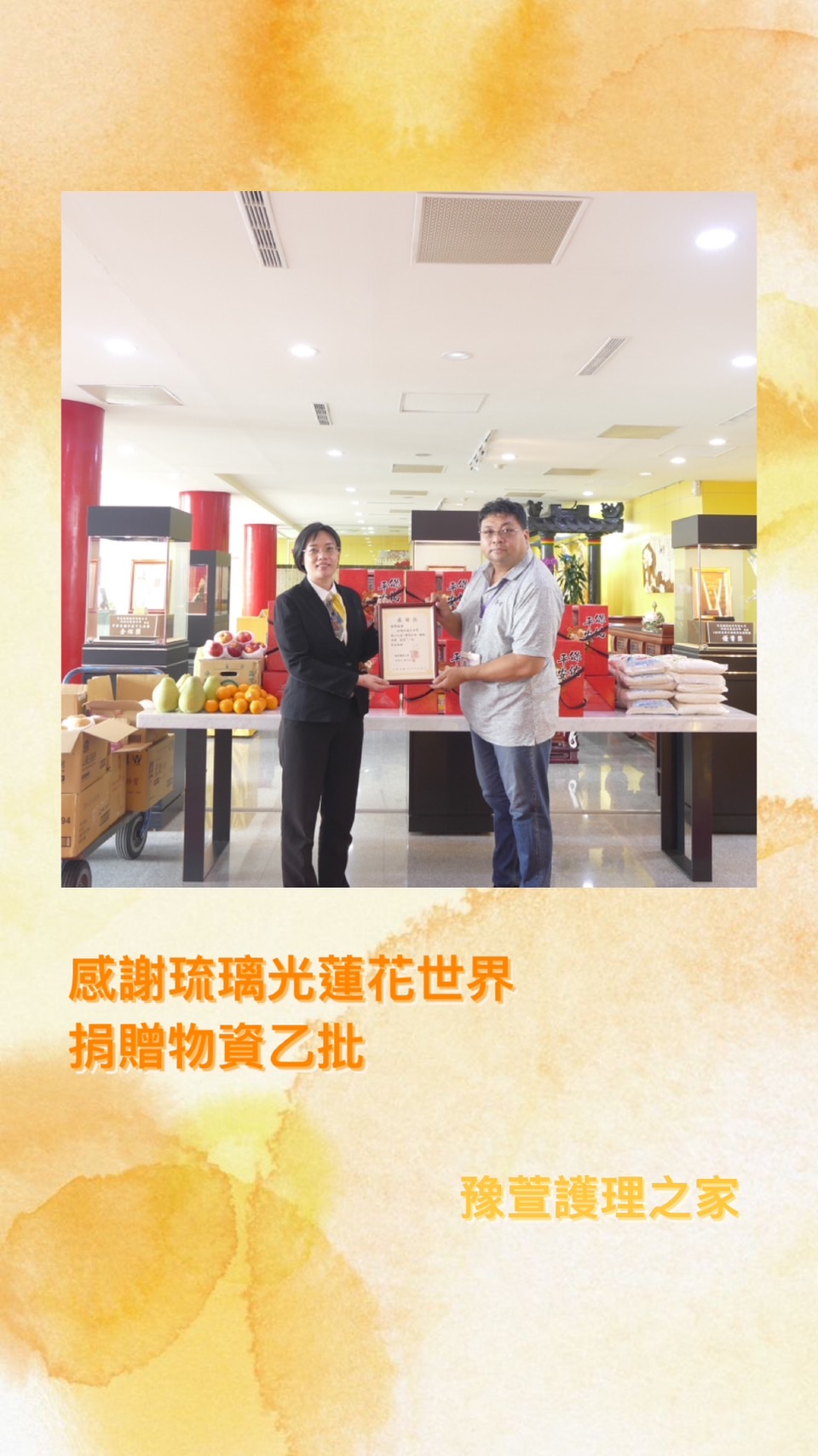 感謝~關西鎮琉璃光蓮花世界捐贈物資一批